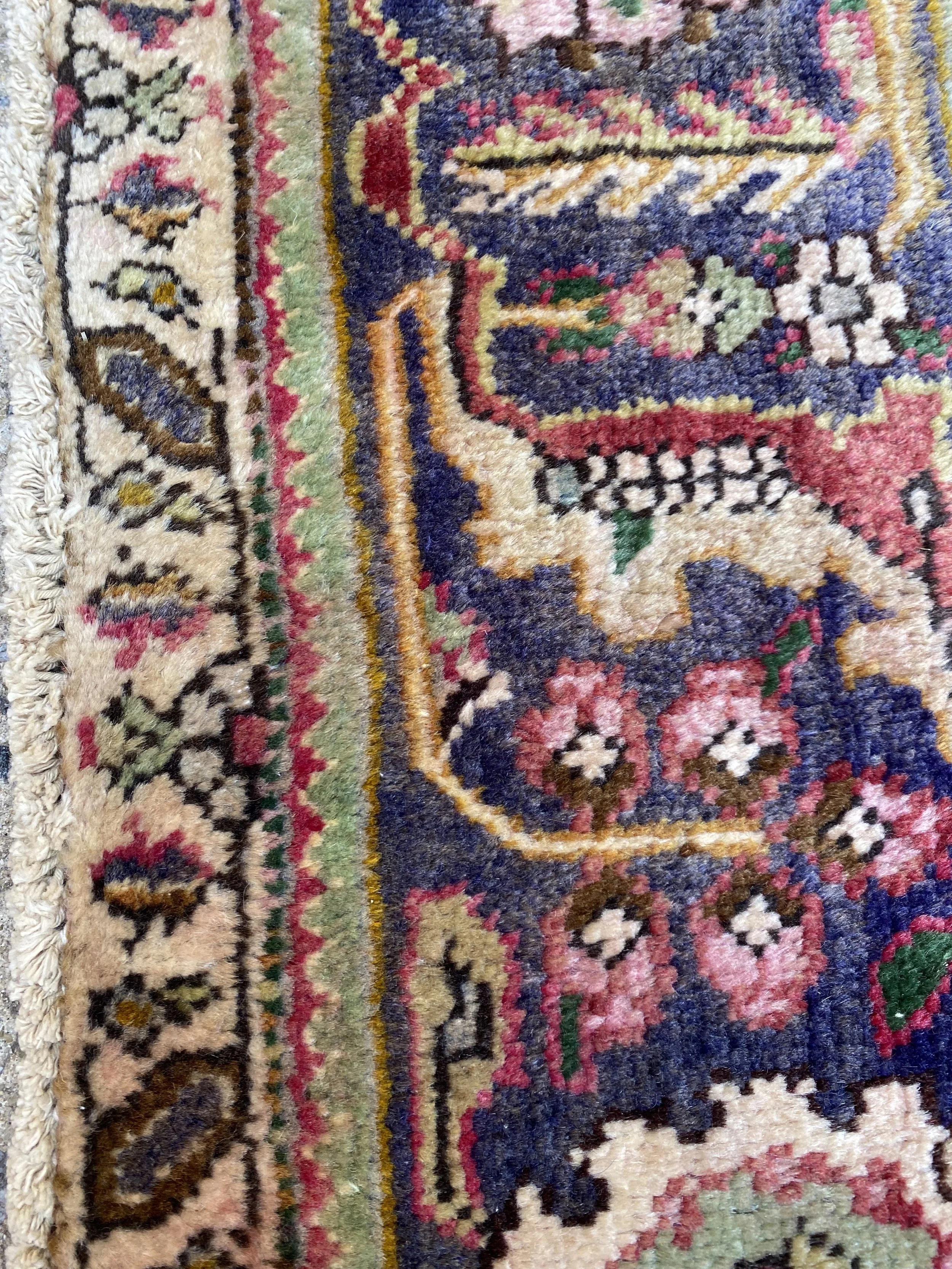 c1930 Antique Tabatabaie Rug. Beautifully hand knotted with vegetable dyes. Wool. No rips or tears. Vegetable dyes faded in some areas. Fringe repaired. Condition visible in photos.